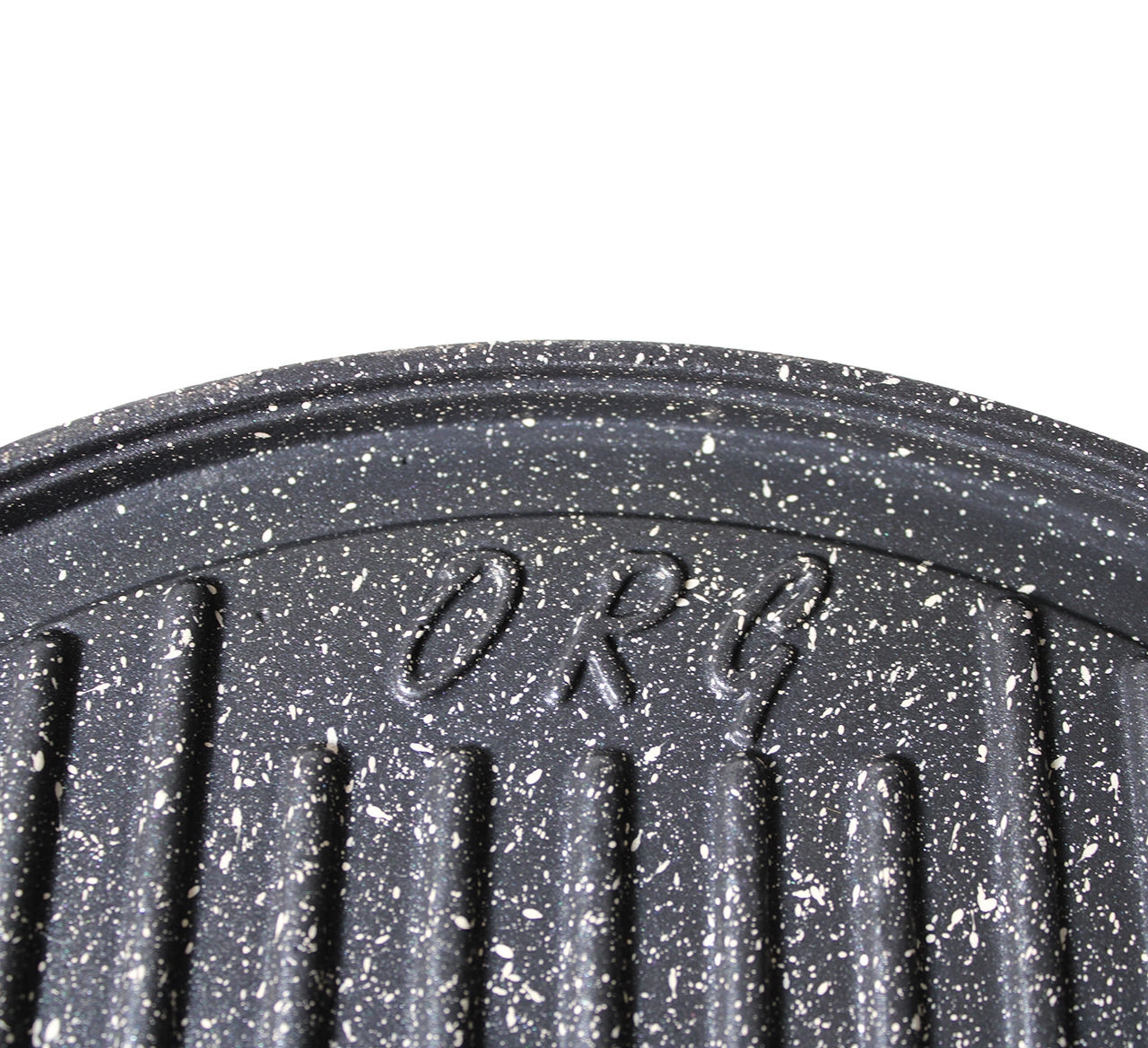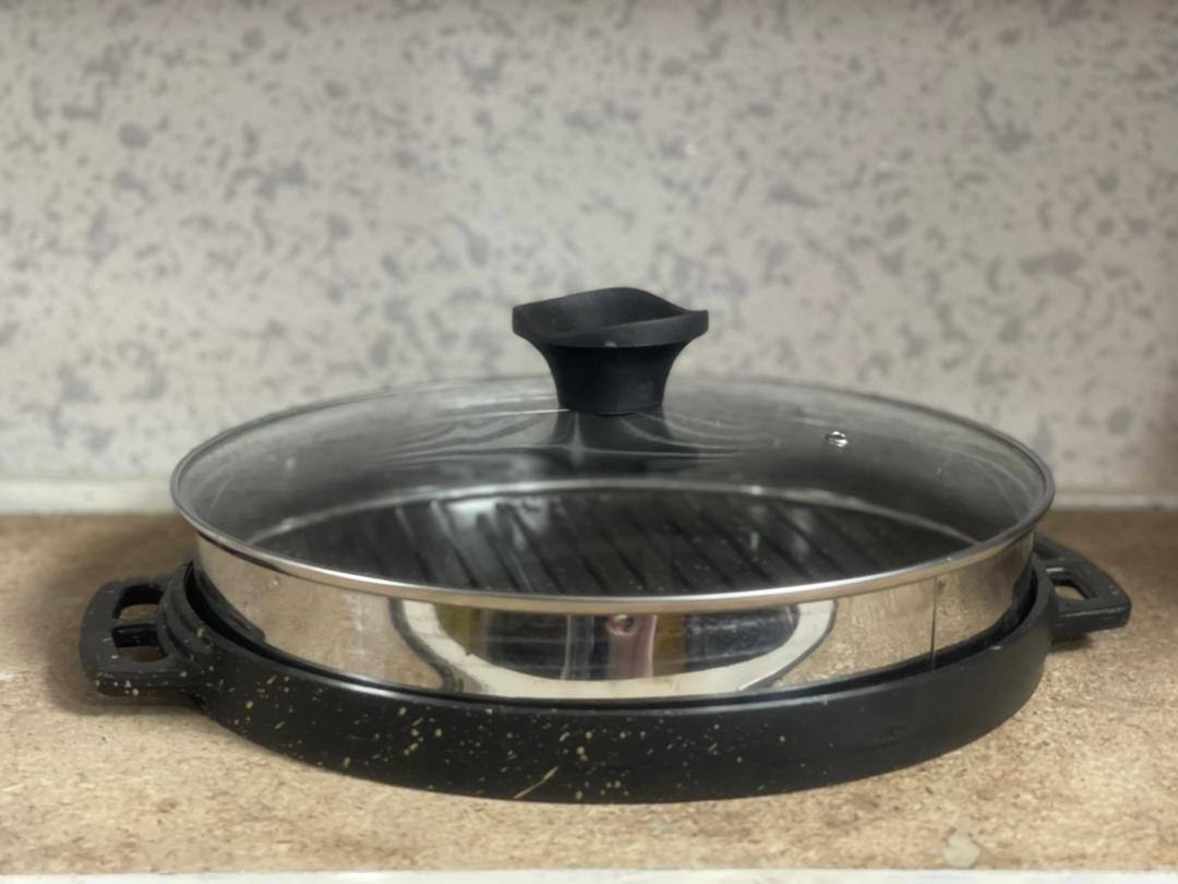تابه گریل از جنس چدن بسیار خوش ساخت و مقاوم است . این تابه از دو دسته در طرفین ساخته شده است و از جنس چدن با روکش دیسکاور تشکیل شده است. با استفاده از کمترین روغن سالم ترین غذاهارا برای خود حاضرکنید و از مضراتی که روغن به بدن شما می رساند جلوگیری کنید. پس از استفاده به راحتی میتوانید تابه را شستشو دهید. این تابه چدنی هیچ گونه مواد مضر را به غذاهای درحال پخت واردنمیکند و حرارت را به طور یکسان در سرتاسر تابه پخش میکند. سایز این تابه ۲۸ می باشد و مقدار مناسبی از غذاها را درخود جای میدهد. اقلام همراه این تابه شامل درب شیشه ای ، چنگال سرو می باشد. با این تابه میتوانید انواع غذاهای کبابی را حاضرکنید. قابلیت استفاده روی زغال ، داخل فر، روی گاز و ... می باشد. حفظ طعم و عطر غذاهای مختلف به بهترین شکل.