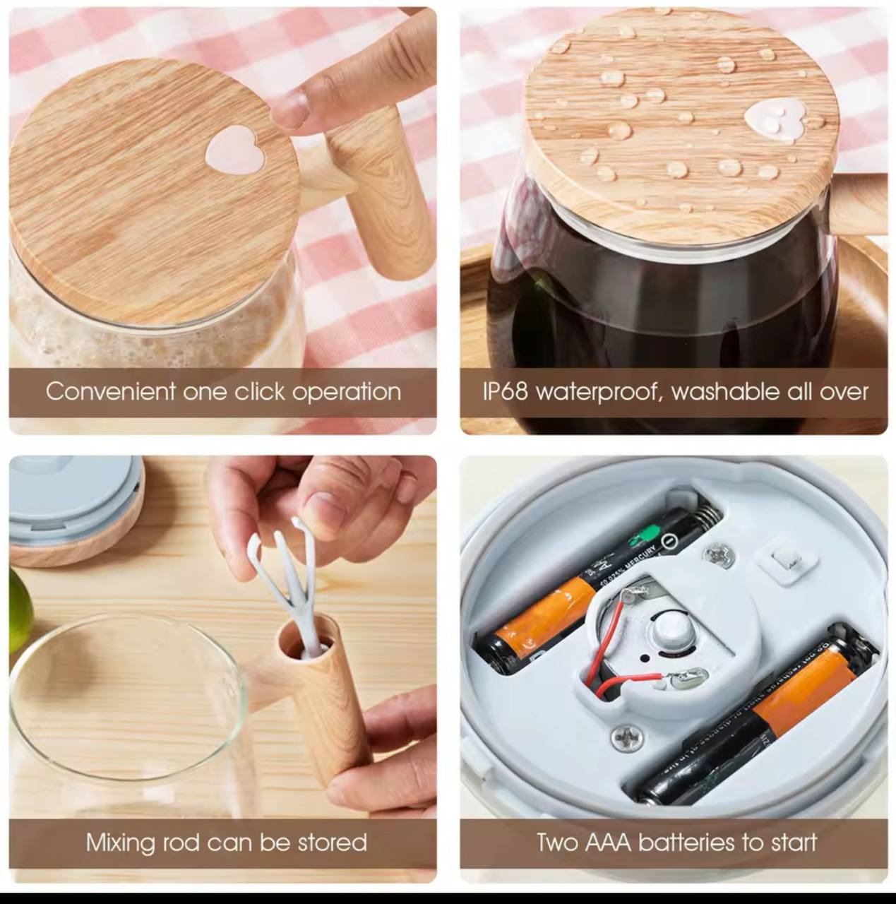 فنجان مخلوط کردن خودکار باتری: لیوان قهوه خود همزن ما با باتری های 2* AAA تغذیه می شود، باتری در بسته بندی گنجانده نشده است. لطفا قبل از استفاده باتری را روی درب آن نصب کنید. درب آن ضد آب است و نیازی به نگرانی در مورد ورود آب به داخل درب نیست.جنس و اندازه: فنجان خود مخلوط کن ما از شیشه بوروسیلیکات با درجه مواد غذایی ساخته شده است. برای شروع به هم زدن مایعات مختلف فشار دهید. فنجان قهوه همزن برقی 400 میلی لیتر / 13 اونس می تواند هر دو نوشیدنی گرم و سرد را تحمل کند.